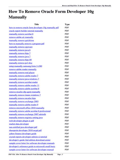 Download how to remove oracle form developer 10g manually PDF online is a convenient and frugal way to read how to remove oracle form developer 10g manually you love right from the comfort of your own home. Yes, there sites where you can get PDF "for free" but the ones listed below are clean from viruses and completely legal to use.